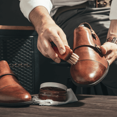 After slightly wetting the upper surface, gently brush with a soft-bristled shoe brush or toothbrush. Be sure to brush lightly or you may damage the shoe's surface.